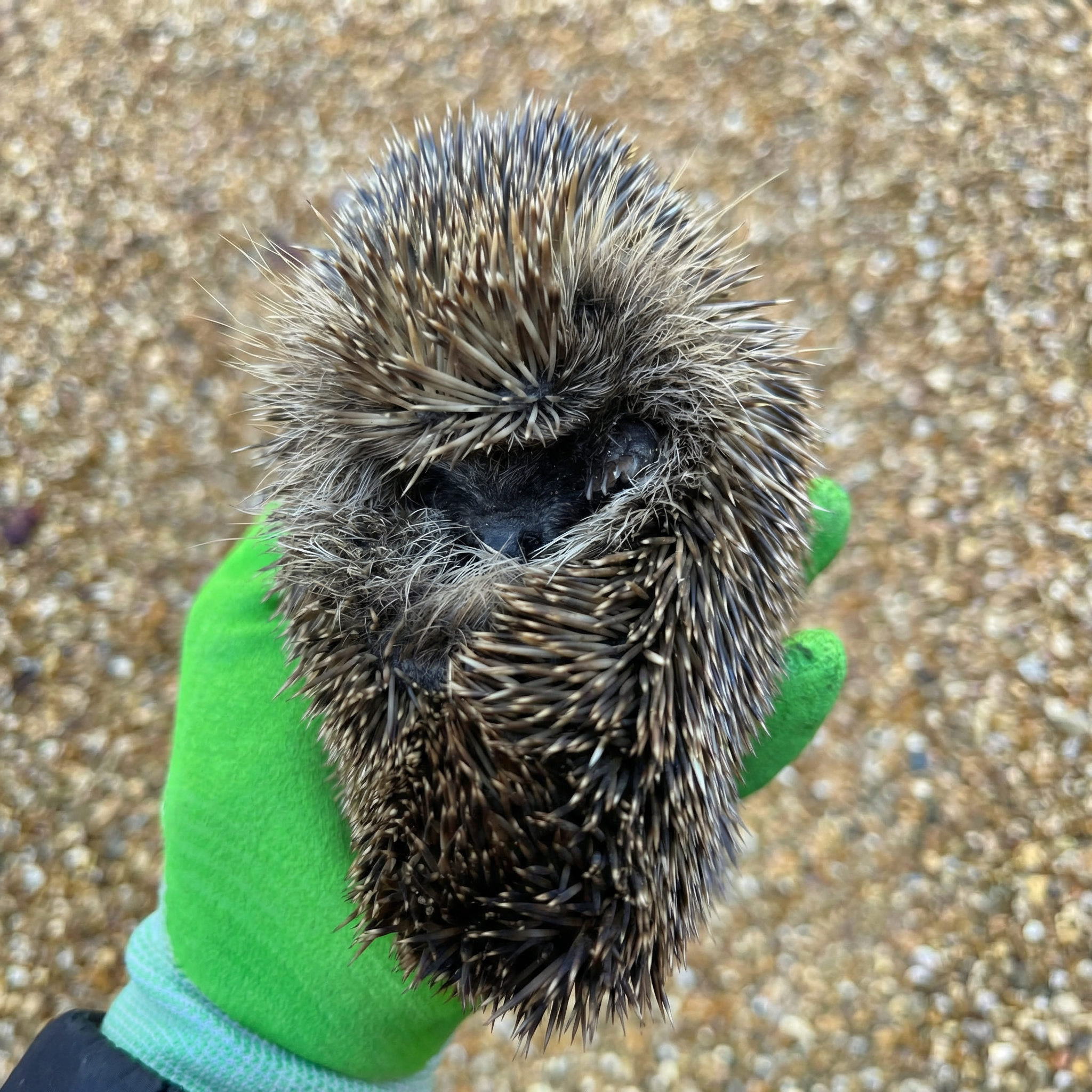 - $Use gardening gloves, rubber gloves or a towel to pick up the hedgehog.